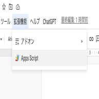 クリックし、”Apps Script” を選択します。